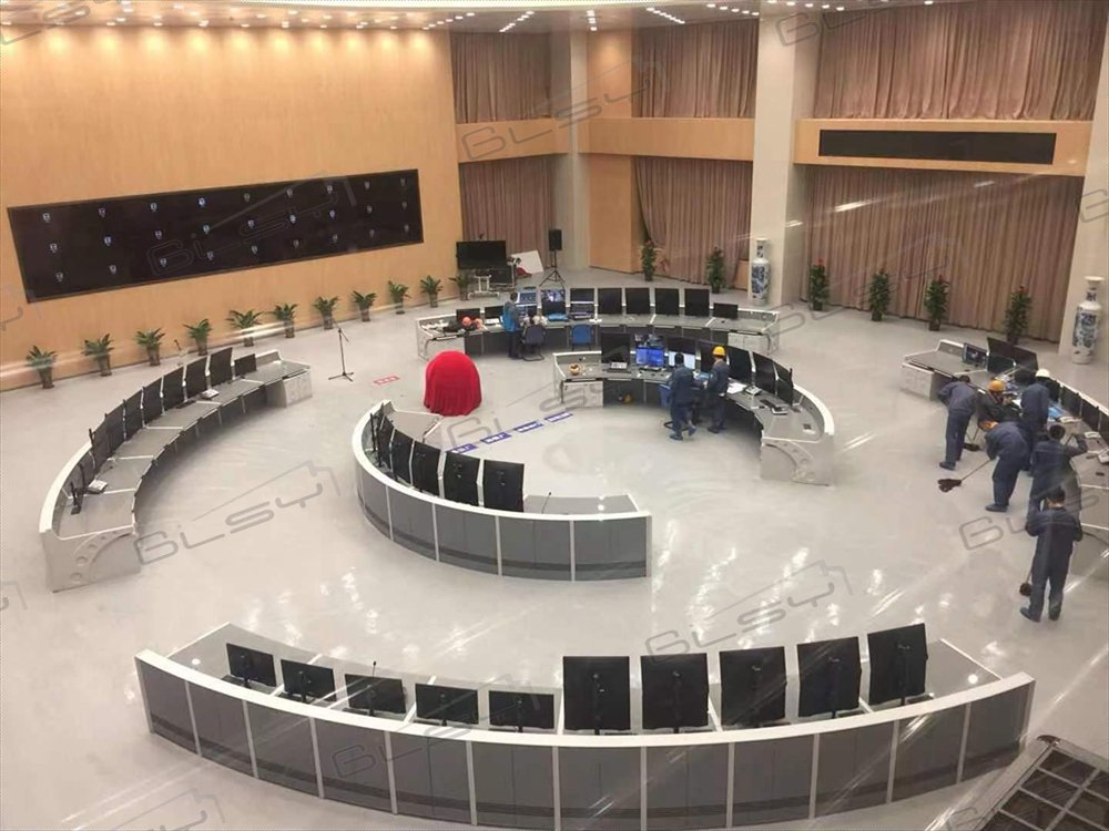 控制臺(tái)的設(shè)計(jì)結(jié)合使用方的實(shí)際情況,布局合理、美觀、可用性高,符合安全規(guī)范以及人體工學(xué)方面的要求,配置應(yīng)依照指揮中心的實(shí)際面積、尺寸以及空間布局的合理性進(jìn)行設(shè)計(jì),并且應(yīng)考慮到與整個(gè)環(huán)境的協(xié)調(diào)性。