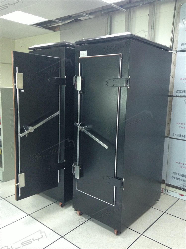 2.外觀:美觀大方,色樣按甲方要求。(表面油漆顏色:黑色) 3.殼體:1.5mm厚的冷軋鋼板焊接成的全密閉的箱體,經(jīng)鍍鋅與油漆等防腐蝕處理; 4.前門屏蔽門:材料經(jīng)過精心制作與處理的屏蔽簧片、冷軋鋼板焊接成的門扇組成的屏蔽門; (老款機柜帶按鎖,新款機柜不配置) (根據(jù)客戶需求可增加屏蔽后門,方便接線,價格另外核算) 5.設(shè)備支架:上下前后可調(diào)位置,配套螺栓20對; 6. 放置服務(wù)器層板:普通標準2米機柜配置三塊層板; | |||